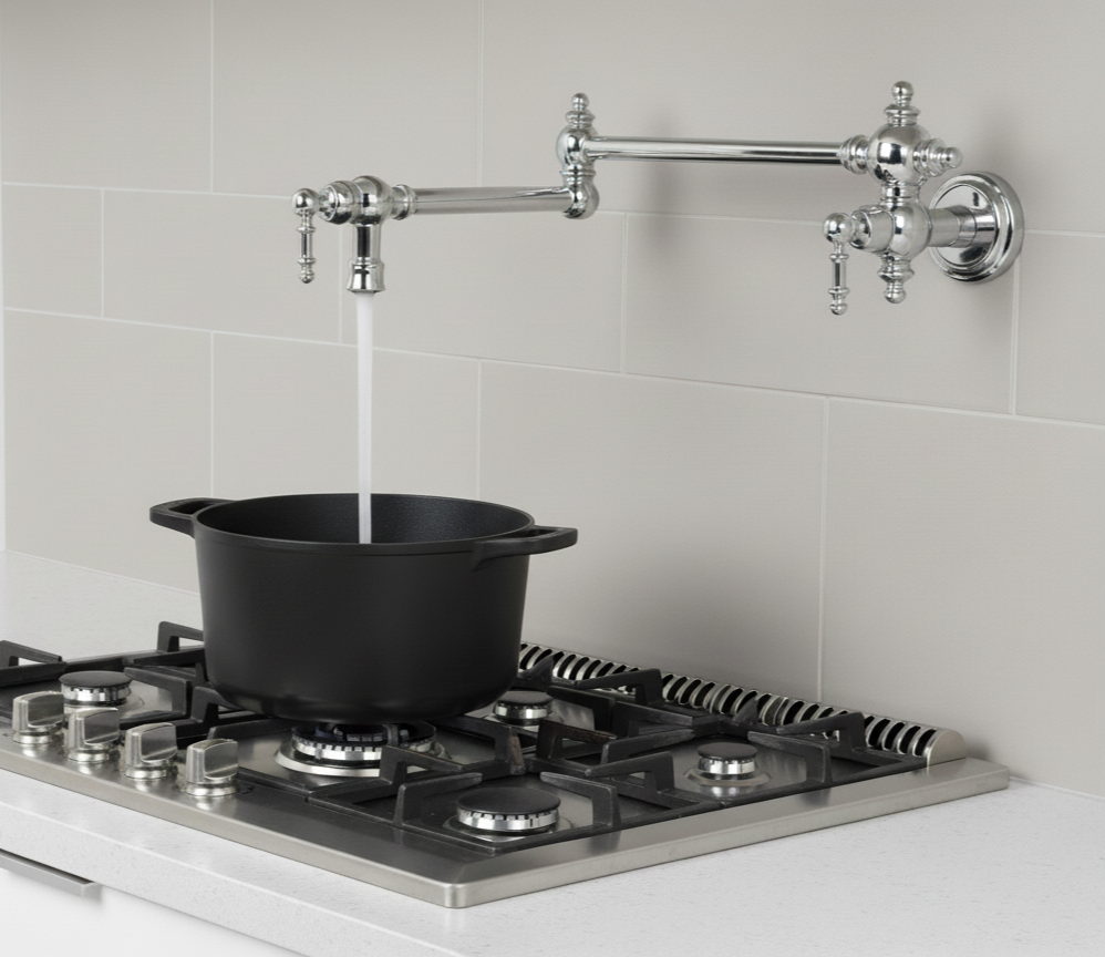 اگه اهل آشپزی باشی میدونی که جا به جا کردن قابلمه و و کتری بین سینک و اجاق گاز چه کار پر دردسر و زمانگیری هستش راه حل این مشکل فقط قابلمه پر کن هایی هستش که بالای گاز نصب میشن و به شما این امکان را میدن تا همونجا ظرف خود را پر از آب کنید، این اهرم ها طوری طراحی شده اند که تمام سطح اجاق گاز را پوشش می دهند و قابلمه روی هر شعله ای که باشد به راحتی اهرم روی آن تنظیم می شود و می توانید به اندازه مورد نیاز در قابلمه آب پر کنید این قابلمه پر کن ها علاوه بر بالا رفتن سرعت عملکرد، زیبایی منحصر به فردی نیز در آشپز خانه شما ایجاد می کند.«رنگ محصول ممکن است به دلیل نورپردازی، عکاسی و نمایشگر کمی با تصویر متفاوت باشد.»